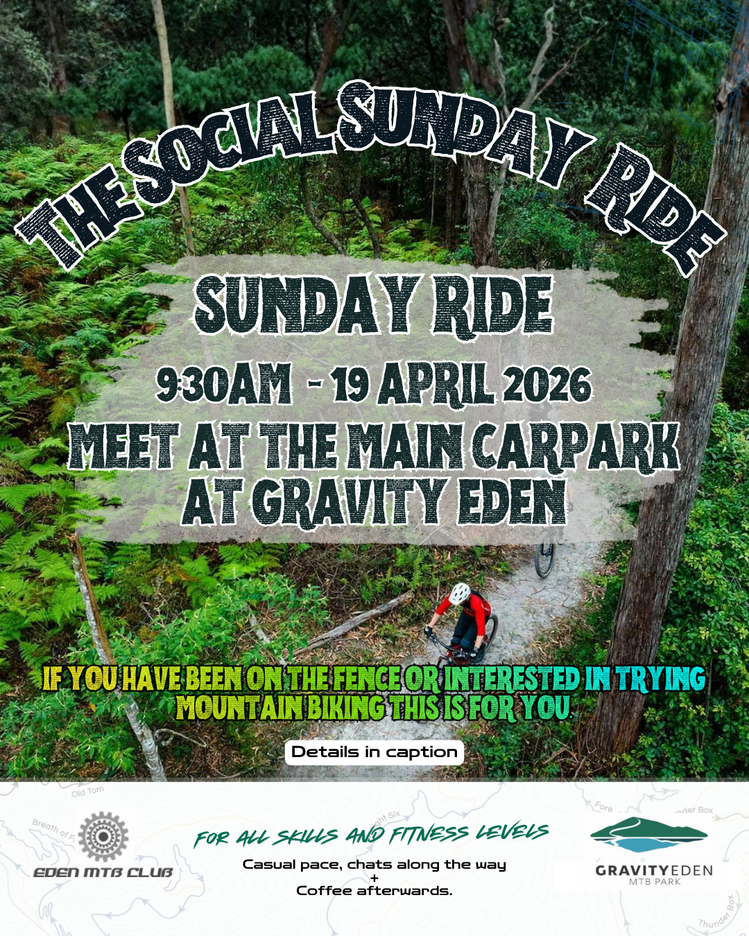 New for 2026, the Social Sunday Ride is a monthly, relaxed ride at Gravity Eden where connection comes first.